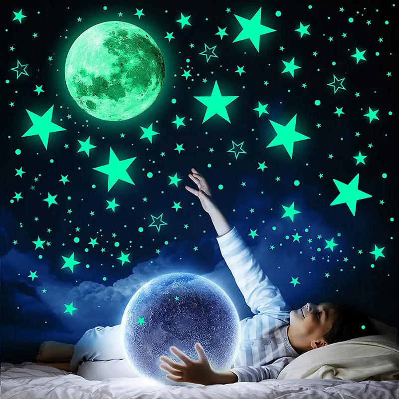 Glow-in-the-dark star stickers turn any room into a starry night sky galaxy, creating a calming and comforting atmosphere for bedtime. They help ease night time fears and make going to bed more exciting. Perfect for encouraging imaginative play and helping kids drift off to sleep with a sense of wonder.